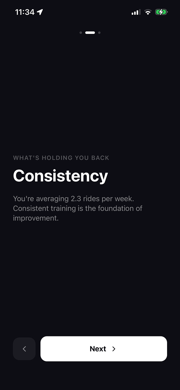 Concrete, practical steps. The kind of advice you'd get from someone who actually knows your riding — not a dashboard.